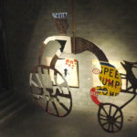 This exhibition is comprised of sculptural weathervanes and “altered-sign” paintings made with re-cycled street and traffic signs salvaged from the Scottsdale Transportation Department. The iconic folk art style of the forms and imagery touch on imagination and social dexterity as a means of crossing boundaries. Nelson conjures  a curious array of signs, signals—shapes and words that reference the deep multi-culturalism that dominates the American experience.