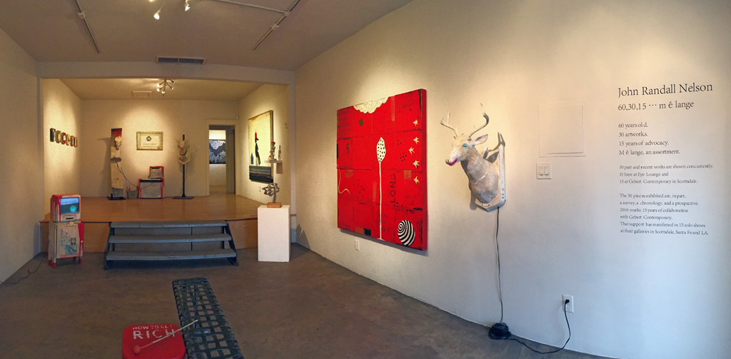 30 past and recent works shown concurrently. 15 at Eye Lounge and 15 at Gebert Contemporary in Scottsdale. The 30 pieces exhibited are, in part, a survey, a chronology, and a prospective.